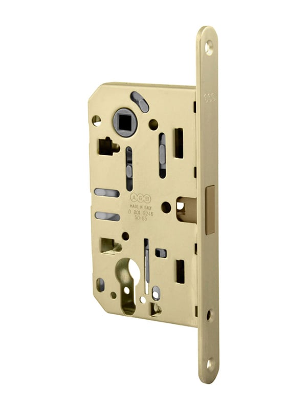 Magnetický zámok do dverí s otvorom s otvorom pre cylindrickú vložku (PZ) s rozmermi čela zámku v dĺžke 196 mm, šírke 18 mm. Rozteč (vzdialenosť medzi otvorom na kľučku a vložkou/kľúčom) – 85 mm , zádlab – 75,5 mm a dormas (vzdialenosť osi kľučky od lišty zámku) – 50 mm.