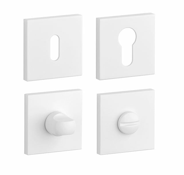 Prevedenia: oválny otvor pre interiérový kľúč (BB), otvor pre cylindrickú vložku (PZ), WC set s vmontovaným kľúčom. Balenie obsahuje 2 kusy roziet (pár) a rozety WC sú v balení ako set.