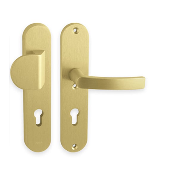 Štítová kľučka na vchodové a bezpečnostné dvere s bezpečnostným oválnym štítom bez prekrytia cylindrickej vložky je vyrobená z hliníka a je povrchovo upravená. Oválny štít má rozmery 52 mm x 242 mm a hrúbku 15 mm.
