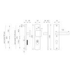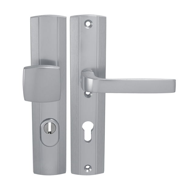 Štítová kľučka na vchodové a bezpečnostné dvere s bezpečnostným hranatým štítom s prekrytím cylindrickej vložky je vyrobená z hliníka a je povrchovo upravená. Hranatý štít má rozmery 52 mm x 242 mm a hrúbku 15 mm.