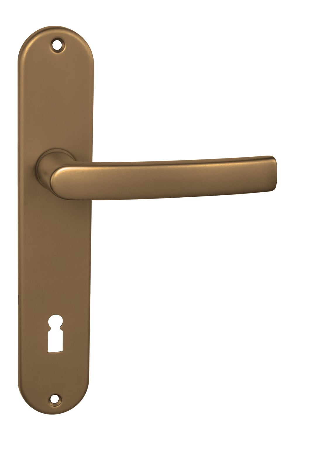 Štítová kľučka na interiérové dvere s oválnym štítom je vyrobená z hliníka a je povrchovo upravená. Oválny štít má rozmery 40 mm x 225 mm a kľučka neobsahuje vratný mechanizmus.