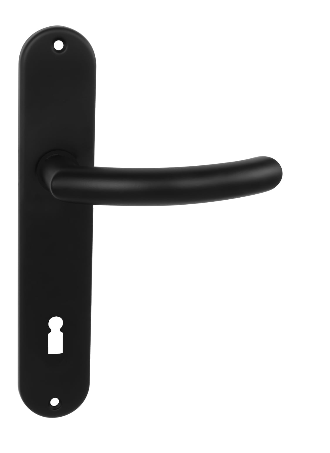 Štítová kľučka na interiérové dvere s oválnym štítom je vyrobená z hliníka a je povrchovo upravená. Oválny štít má rozmery 42 mm x 206 mm a kľučka neobsahuje vratný mechanizmus.