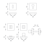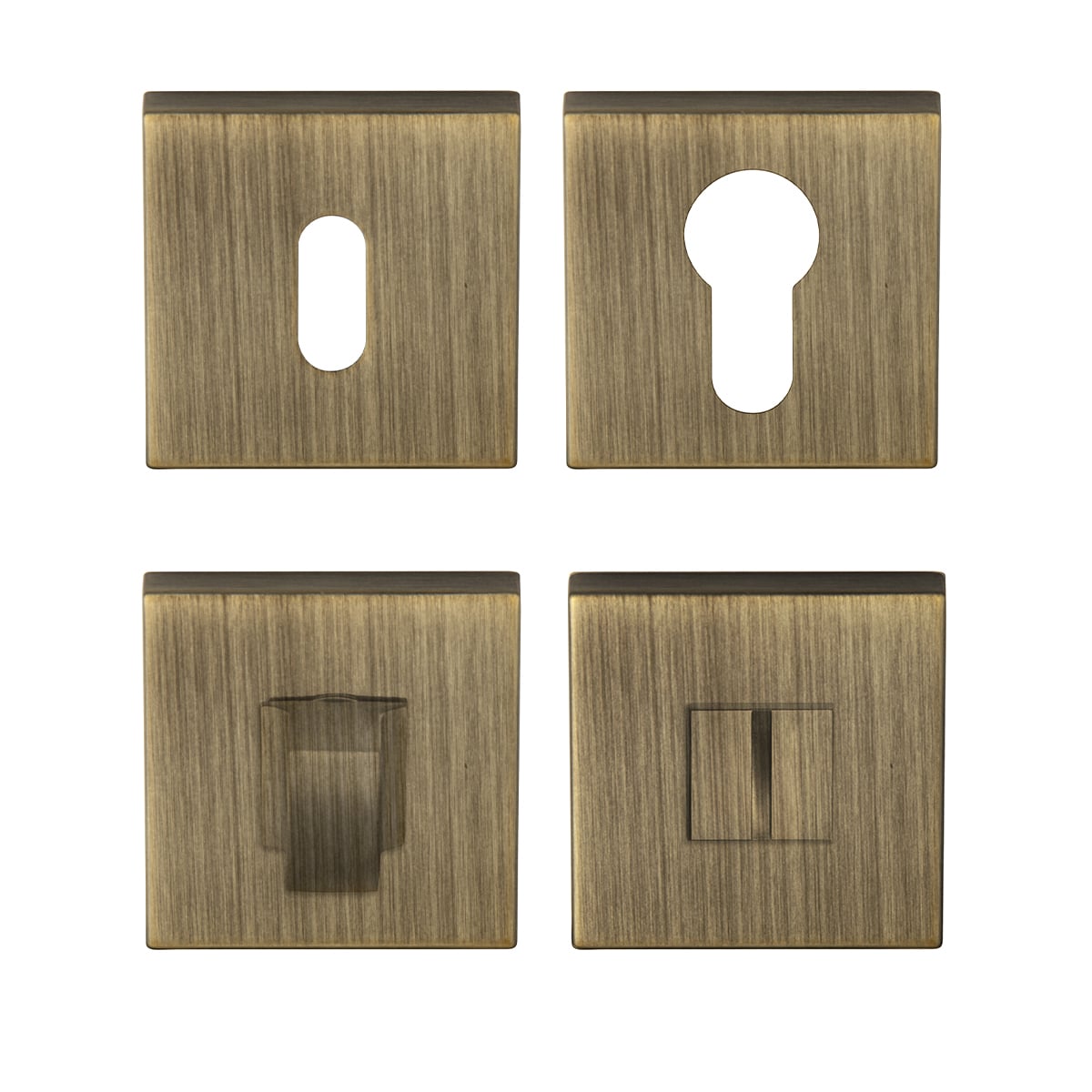 Hranatá rozeta je vyrobená z materiálov vysokej kvality – zamak a je povrchovo upravená. Rozeta má rozmery 51 mm x 51 mm a oválny otvor pre interiérový kľúč (BB), otvor cylindrickú vložku (PZ) alebo WC set s vmontovaným kľúčom. Balenie obsahuje 2 kusy roziet (pár) a rozety WC sú v balení ako set.