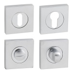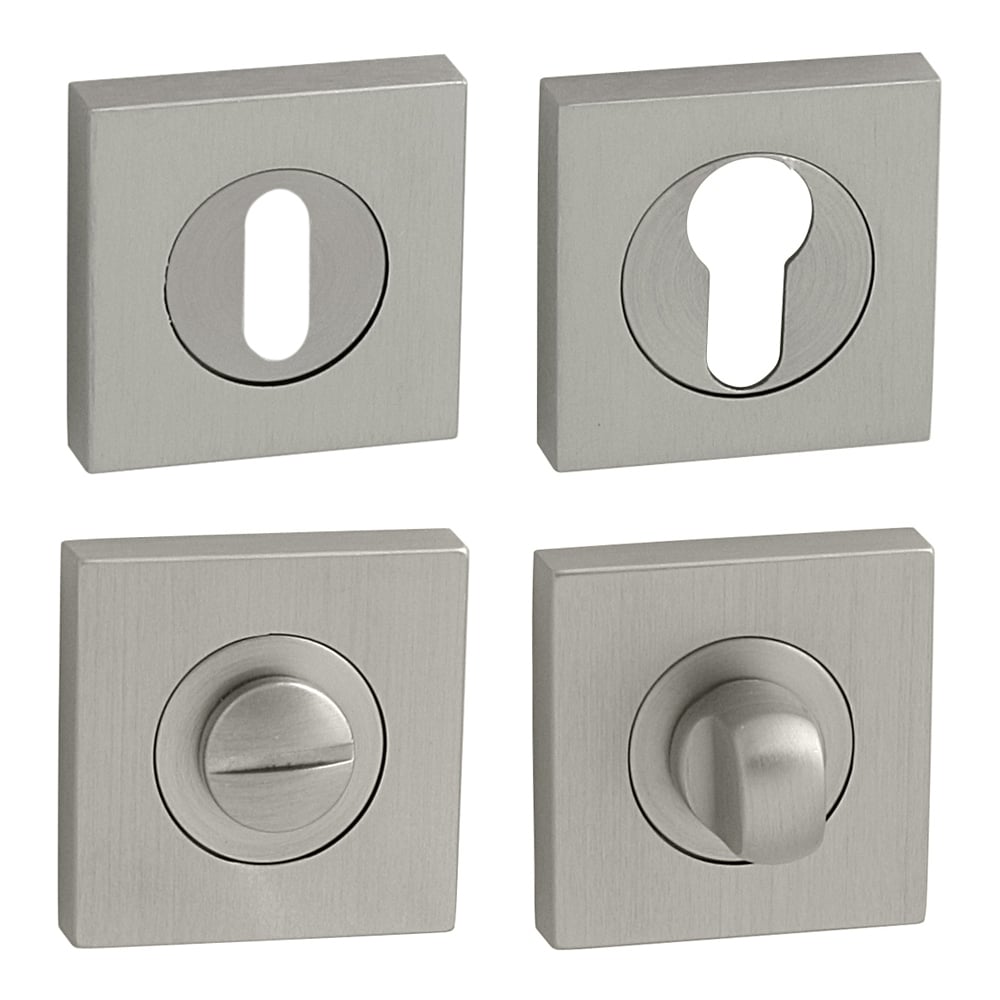 Hranatá rozeta je vyrobená z materiálov vysokej kvality – zamak a je povrchovo upravená. Rozeta má rozmery 51 mm x 51 mm a oválny otvor pre interiérový kľúč (BB), otvor cylindrickú vložku (PZ) alebo WC set s vmontovaným kľúčom. Balenie obsahuje 2 kusy roziet (pár) a rozety WC sú v balení ako set.