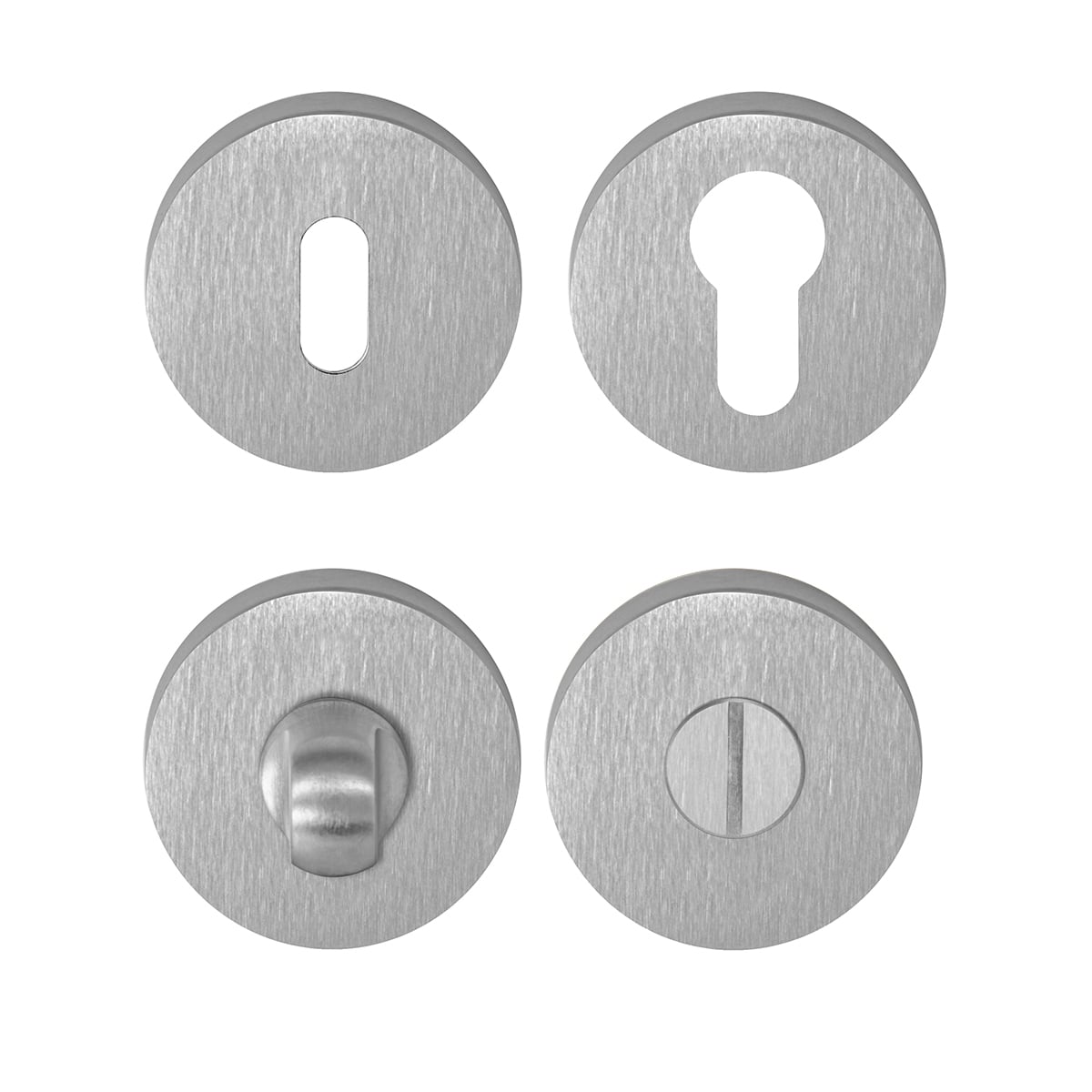Okrúhla rozeta je vyrobená z materiálov vysokej kvality – zamak a je povrchovo upravená. Rozeta má priemer 50 mm a s oválny otvor pre interiérový kľúč (BB), otvor pre cylindrickú vložku (PZ) alebo WC set s vmontovaným kľúčom. Balenie obsahuje 2 kusy roziet (pár) a rozety WC sú v balení ako set.