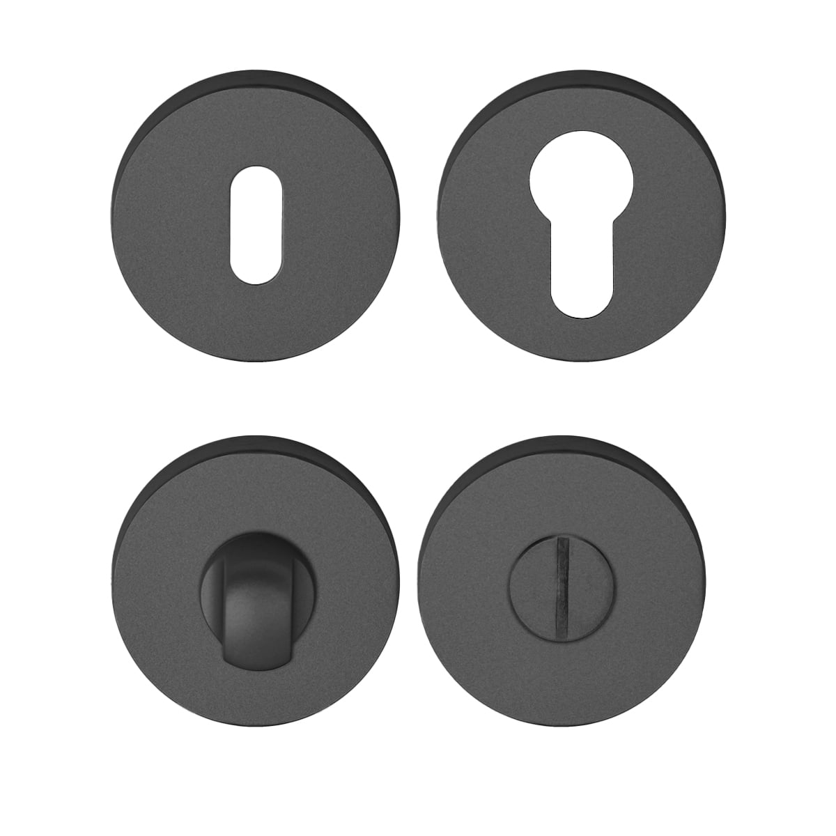 Rozeta má oválny otvor pre interiérový kľúč (BB), otvor pre cylindrickú vložku (PZ) alebo WC set s vmontovaným kľúčom.