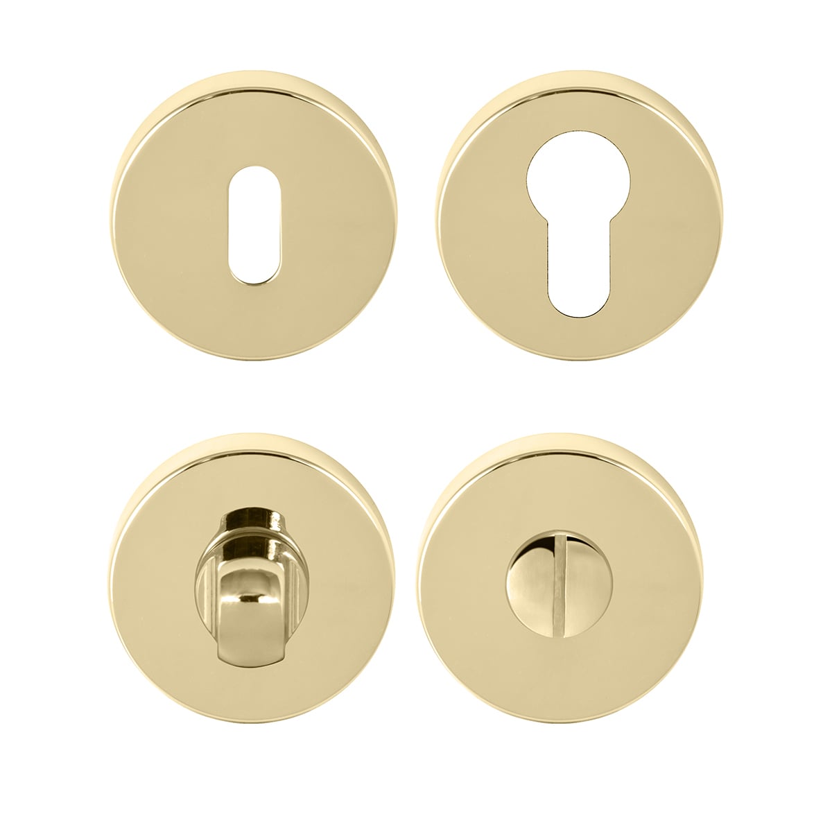 Okrúhla rozeta je vyrobená z materiálov vysokej kvality – zamak a je povrchovo upravená. Rozeta má priemer 50 mm a s oválny otvor pre interiérový kľúč (BB), otvor pre cylindrickú vložku (PZ) alebo WC set s vmontovaným kľúčom. Balenie obsahuje 2 kusy roziet (pár) a rozety WC sú v balení ako set.