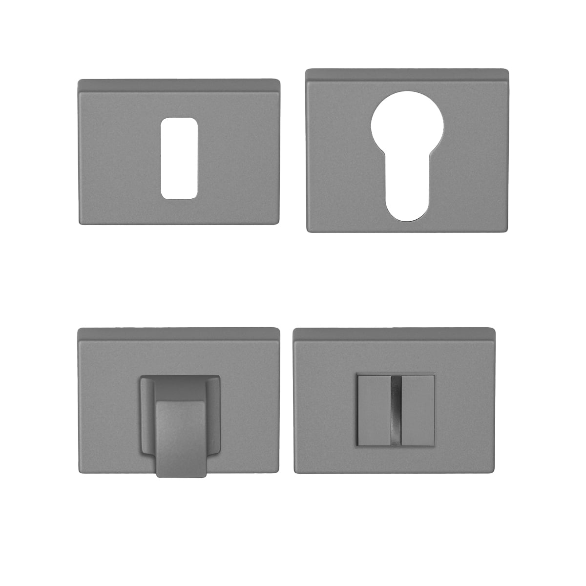 Rozeta má hranatý otvor pre interiérový kľúč (BB), otvor pre cylindrickú vložku (PZ) alebo WC set s vmontovaným kľúčom. Balenie obsahuje 2 kusy roziet (pár) a rozety WC sú v balení ako set.