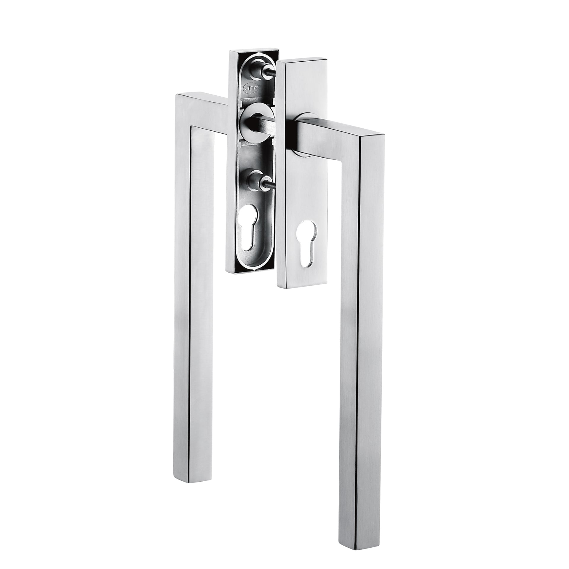 Kľučka IN.17.123 na balkónové dvere s hranatou rozetou a PZ otvorom pre kľúč je vyrobená z kvalitného materiálu, nehrdzavejúcej ocele a je povrchovo upravená. Kľučka má 4-polohový mechanizmus s kovovým telom.