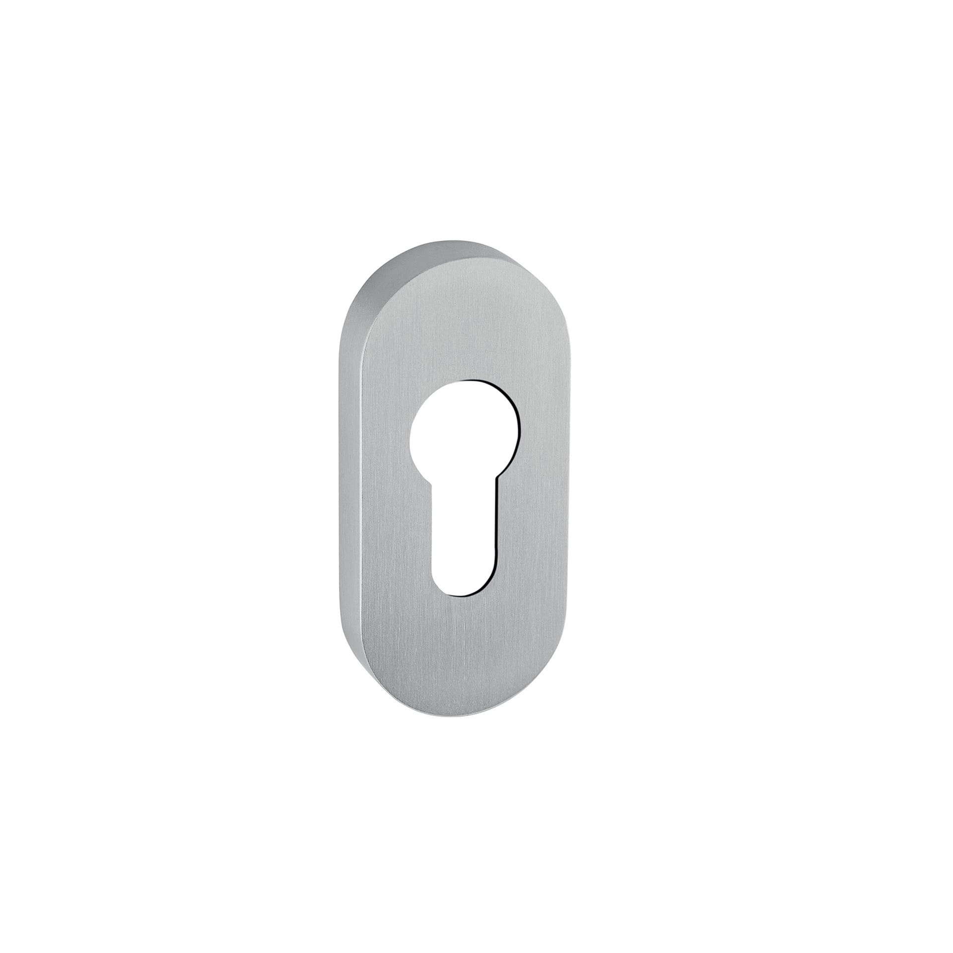 Úzka oválna rozeta JNF IN.04.36O.Y10M. Úzka oválna rozeta je vyrobená z vysokokvalitnej nehrdzavejúcej ocele, známej ako nerez a je povrchovo upravená. Rozeta má rozmery 32 mm x 72 mm, hrúbku 10 mm a otvor pre cylindrickú vložku (PZ). Balenie obsahuje 2 kusy roziet (pár).