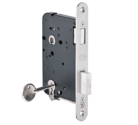 Zadlabávací zámok IN.20.806.50 na dvere do kúpeľne s BB otvorom pre kľúč je vyrobený z nehrdzavejúcej ocele s povrchovou úpravou.