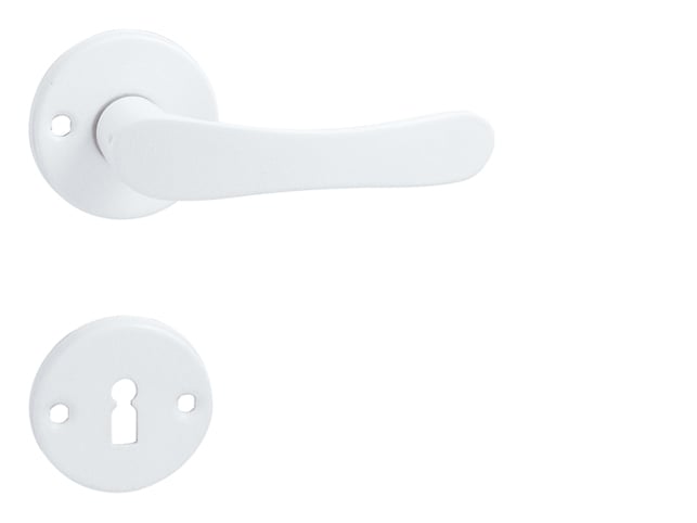 Rozetová kľučka na interiérové dvere s okrúhlou rozetou je vyrobená z hliníka a je povrchovo upravená. Rozeta má priemer 54 mm a hrúbku 8 mm.