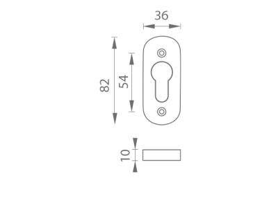 Úzka oválna rozeta je vyrobená z hliníka a je povrchovo upravená. Rozeta má otvor pre cylindrickú vložku (PZ). Balenie obsahuje 2 kusy roziet (pár). Rozeta má rozmery 36 x 82 mm a hrúbku 10 mm.