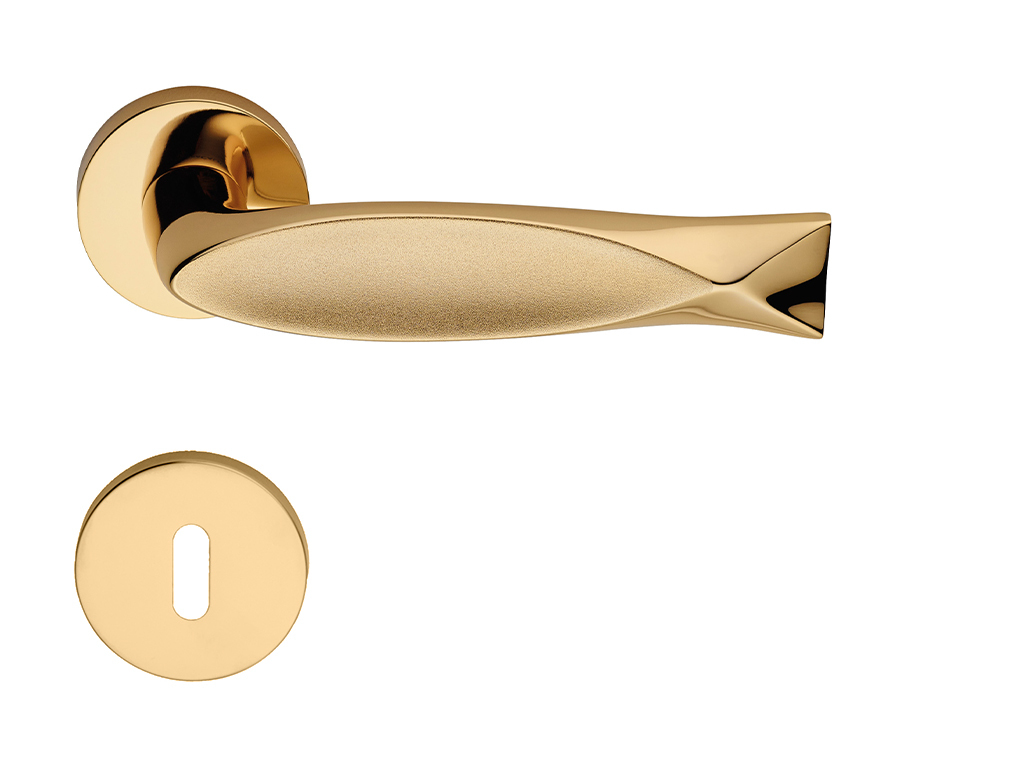 Rozetová kľučka FISH 602 na interiérové dvere s okrúhlou rozetou je vyrobená z materiálov vysokej kvality – mosadz a je povrchovo upravená.