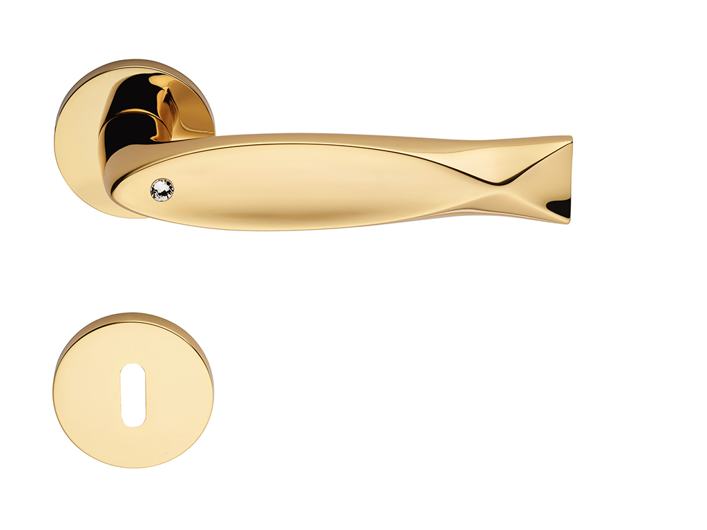 Kľučka v exkluzívnom prevedení z kolekcie Fish Crystal je inšpirovaná tvarom ryby. Rukoväť je tak pre užívateľa príjemná do ruky a zároveň pôsobí vizuálne veľmi jemne a elegantne. Punc jedinečnosti kľučke dodáva vložený Swarovski kryštál.