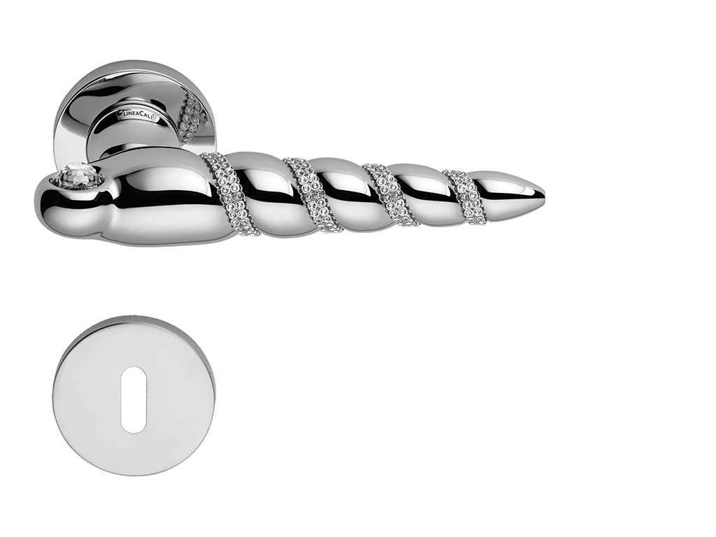 Kľučka v exkluzívnom prevedení SHELL MESH sa pýši dizajnom vzácnej mušle a veľkým kryštálom Swarovski osadeným v hornej časti rukoväte. Okolo tohoto dominantného kameňa je omotaný pás menších kryštálov, ktoré z kľučky robia hotové umelecké dielo.