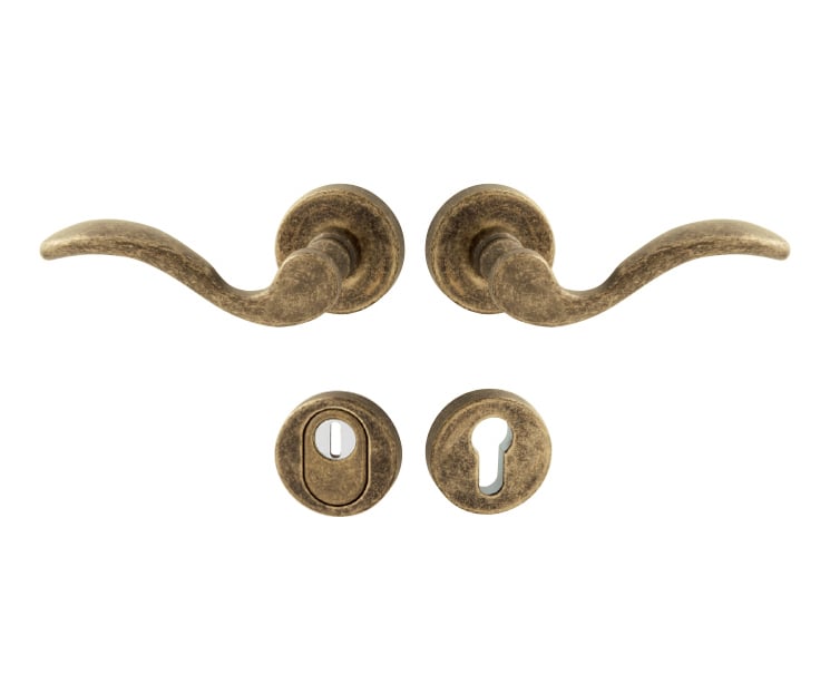 Rozetová kľučka na vchodové a bezpečnostné dvere so spevnenou okrúhlou rozetou s prekrytím cylindrickej vložky je vyrobená z materiálov vysokej kvality – mosadz a je povrchovo upravená. Okrúhla rozeta má priemer 52 mm a hrúbku 11 mm.