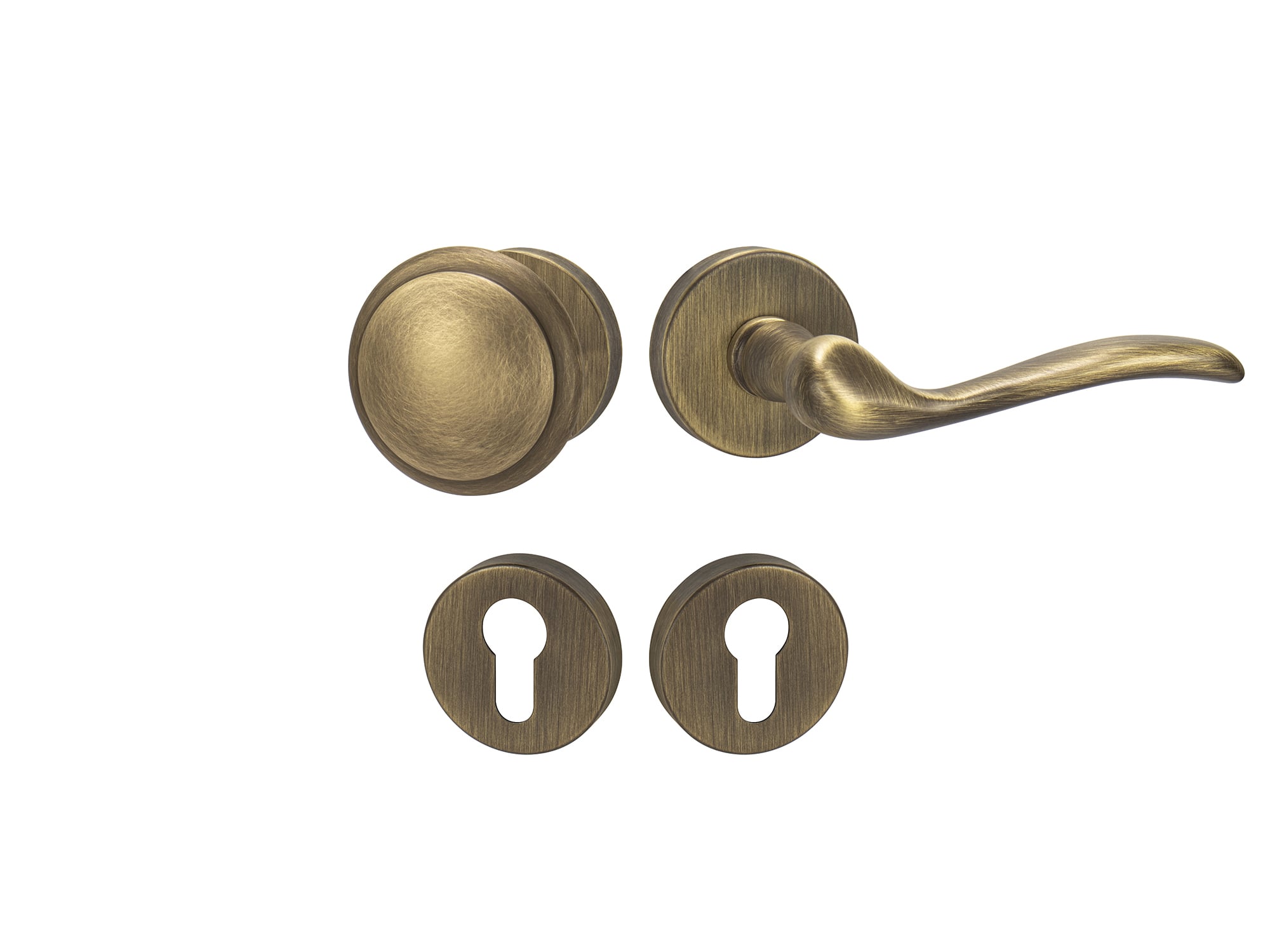 Rozetová kľučka na vchodové a bezpečnostné dvere so spevnenou okrúhlou rozetou bez prekrytia cylindrickej vložky je vyrobená z materiálov vysokej kvality – mosadz a je povrchovo upravená.