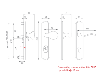 Maximálny rozmer vnútra štítu PLUS pre vložku je 13 mm.