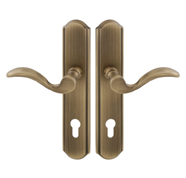Štítová kľučka na vchodové a bezpečnostné dvere so spevneným rustikálnym štítom bez prekrytia cylindrickej vložky je vyrobená z materiálov vysokej kvality – mosadz a je povrchovo upravená. Rustikálny štít má rozmery 51 mm x 250 mm a hrúbku 12 mm.