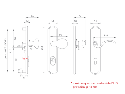 Maximálny rozmer vnútra štítu PLUS pre vložku je 13 mm.