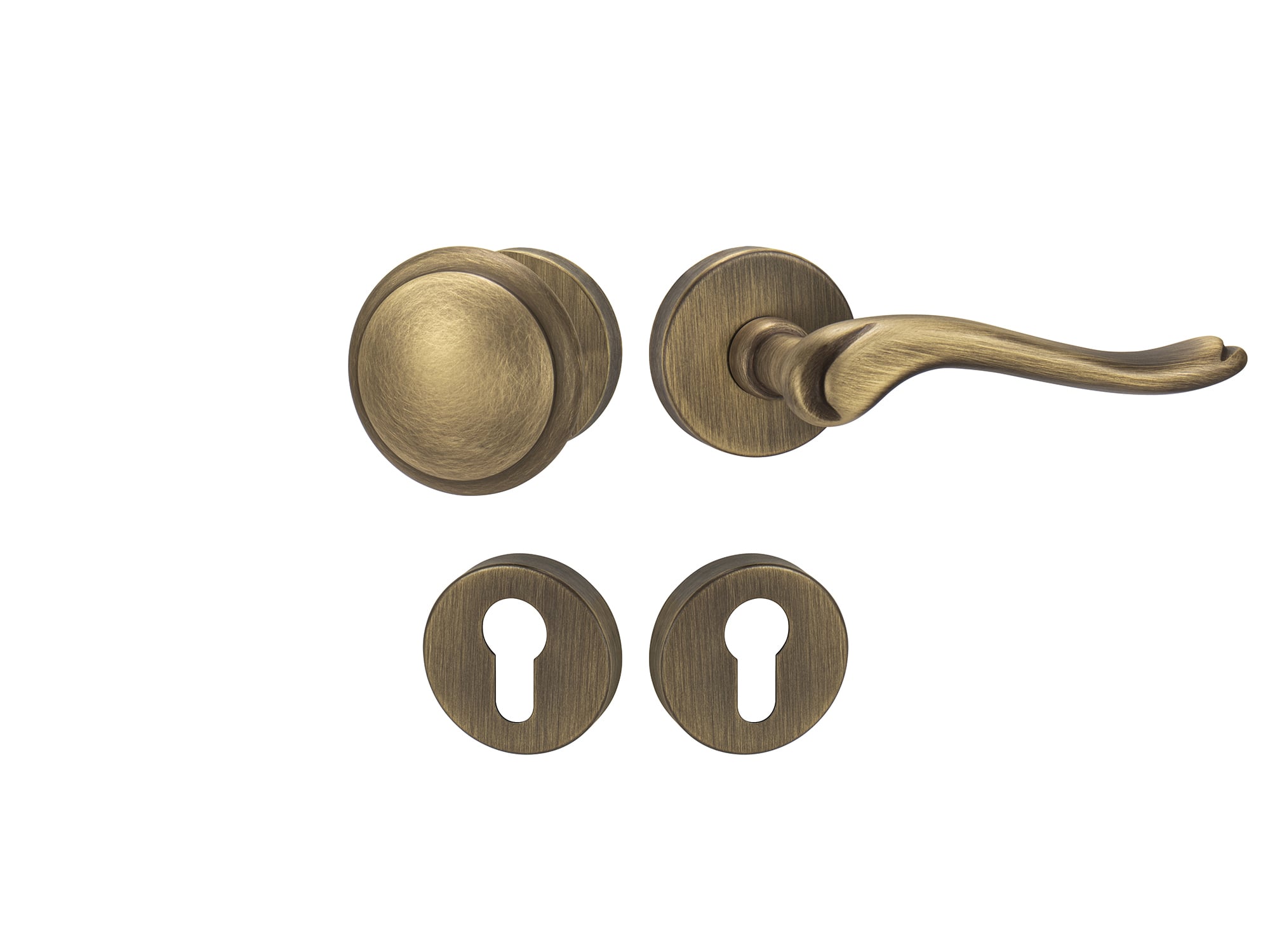 Rozetová kľučka na vchodové a bezpečnostné dvere so spevnenou okrúhlou rozetou bez prekrytia cylindrickej vložky je vyrobená z materiálov vysokej kvality – mosadz a je povrchovo upravená.