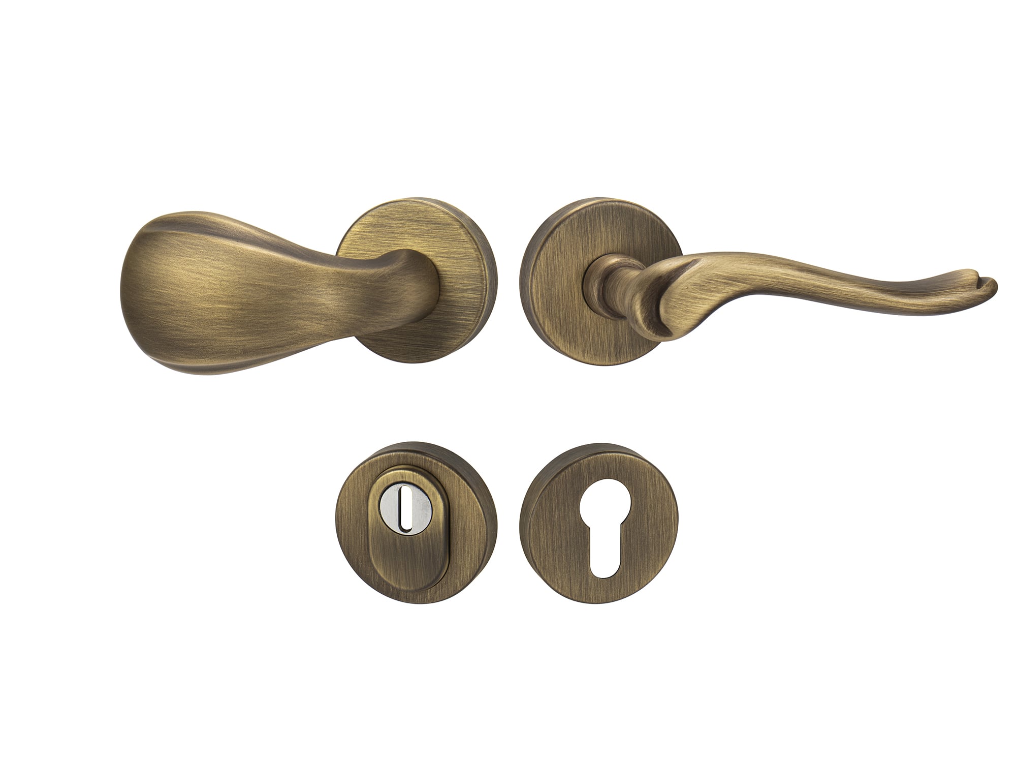 Rozetová kľučka na vchodové a bezpečnostné dvere so spevnenou okrúhlou rozetou s prekrytím cylindrickej vložky je vyrobená z materiálov vysokej kvality – mosadz a je povrchovo upravená.