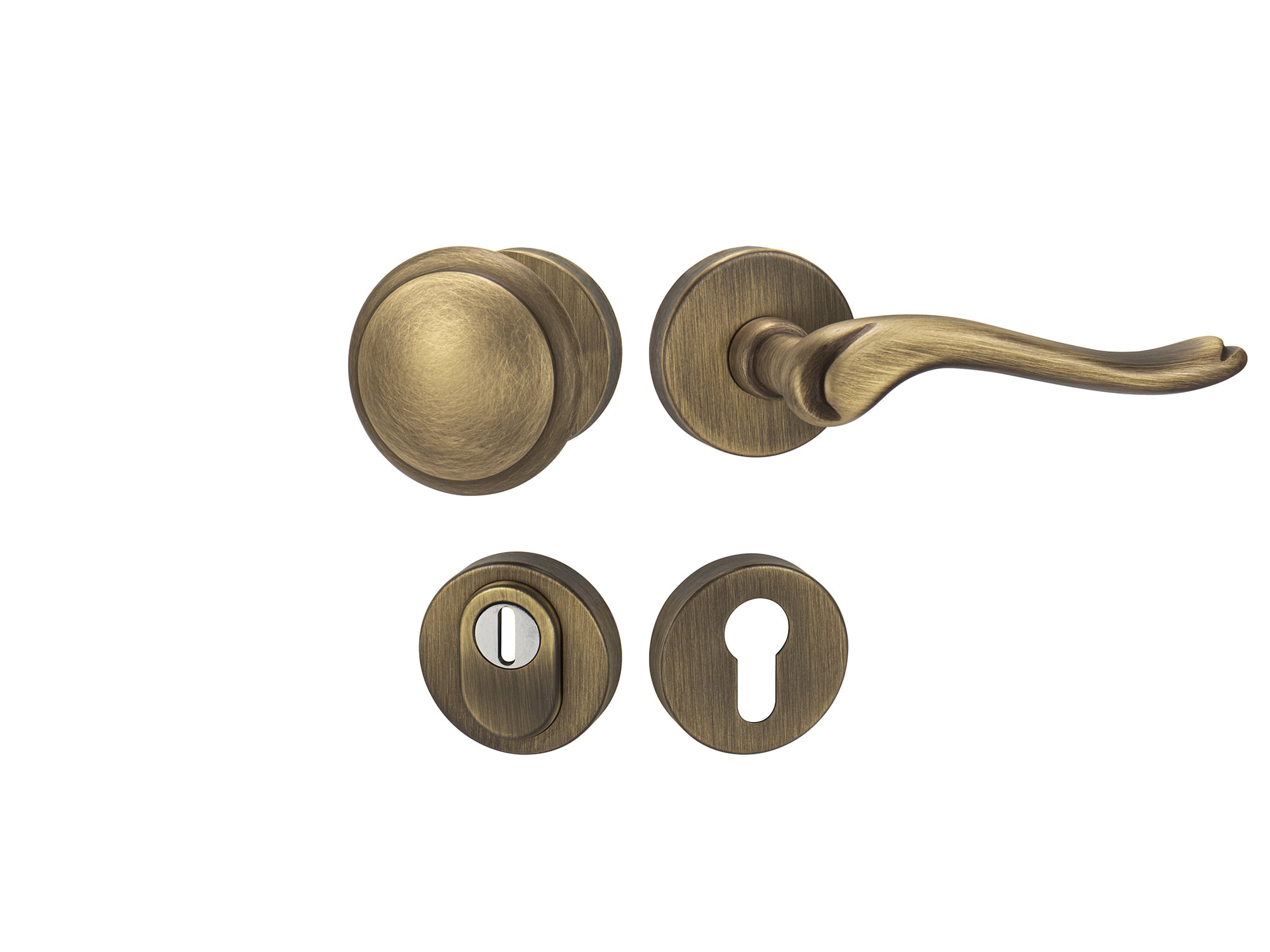 Rozetová kľučka na vchodové a bezpečnostné dvere so spevnenou okrúhlou rozetou s prekrytím cylindrickej vložky je vyrobená z materiálov vysokej kvality – mosadz a je povrchovo upravená.