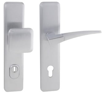 Štítová kľučka na vchodové a bezpečnostné dvere so spevneným hranatým štítom s prekrytím cylindrickej vložky je vyrobená z materiálov vysokej kvality – mosadz a je povrchovo upravená. Hranatý štít má rozmery 55 mm x 250 mm a hrúbku 12 mm.
