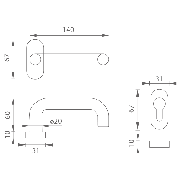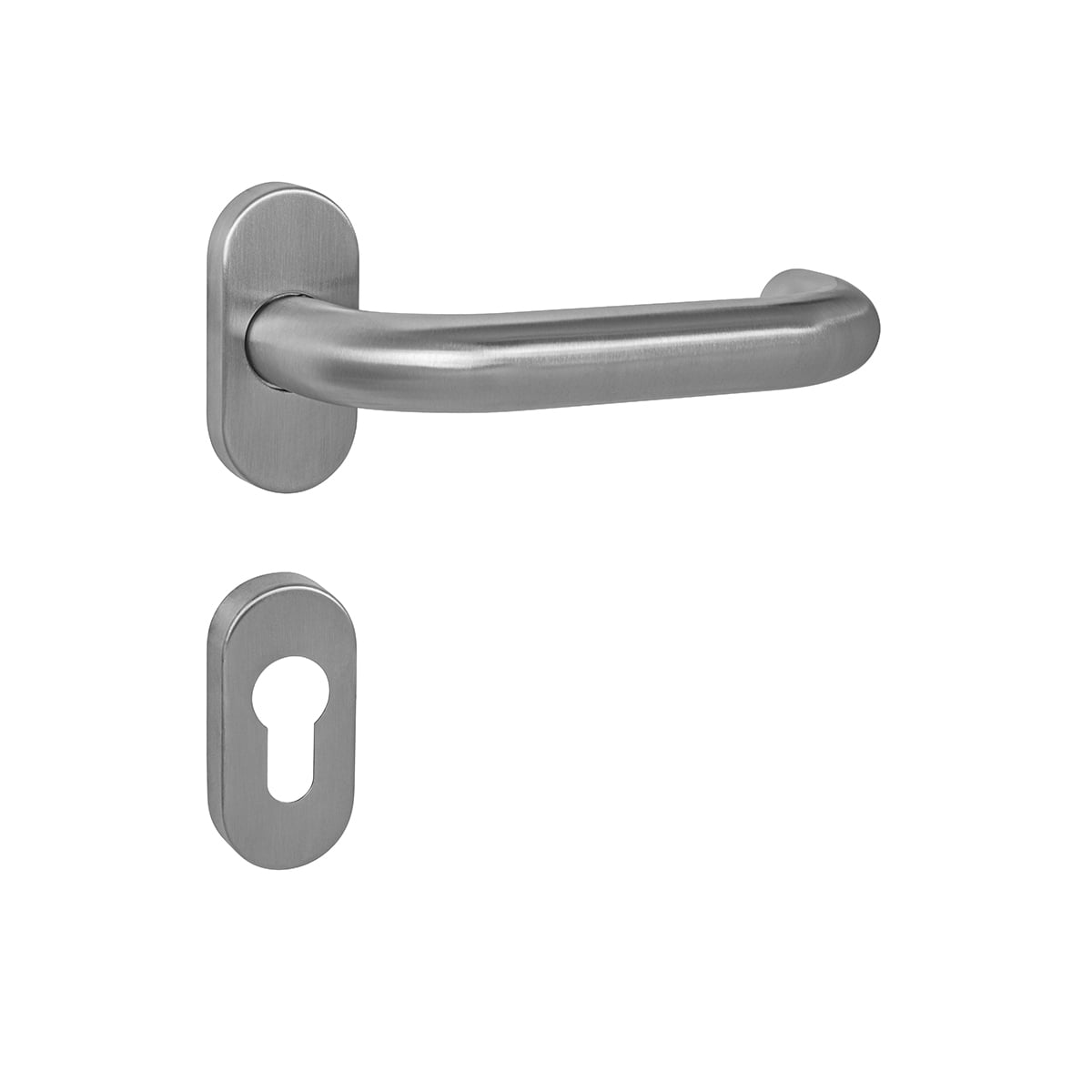 Rozetová kľučka s oválnou úzkou rozetou pre dvere s úzkym profilom (napr.: záhradné bránky a bráničky plotov) je vyrobená z vysokokvalitnej nehrdzavejúcej ocele, známej ako nerez a je povrchovo upravená. Mechanizmus kľučky obsahuje vratnú pružinu.