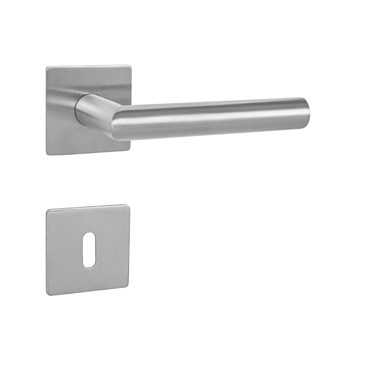 Rozetová kľučka na interiérové dvere s magnetickou plochou hranatou rozetou je vyrobená z vysokokvalitnej nehrdzavejúcej ocele, známej ako nerez a je povrchovo upravená. Rozeta má rozmery 55 mm x 55 mm a hrúbku len 3 mm. Je farebne stabilná a odolná voči opotrebeniu. Kovanie je testované podľa normy EN 1906 na 200 000 cyklov.