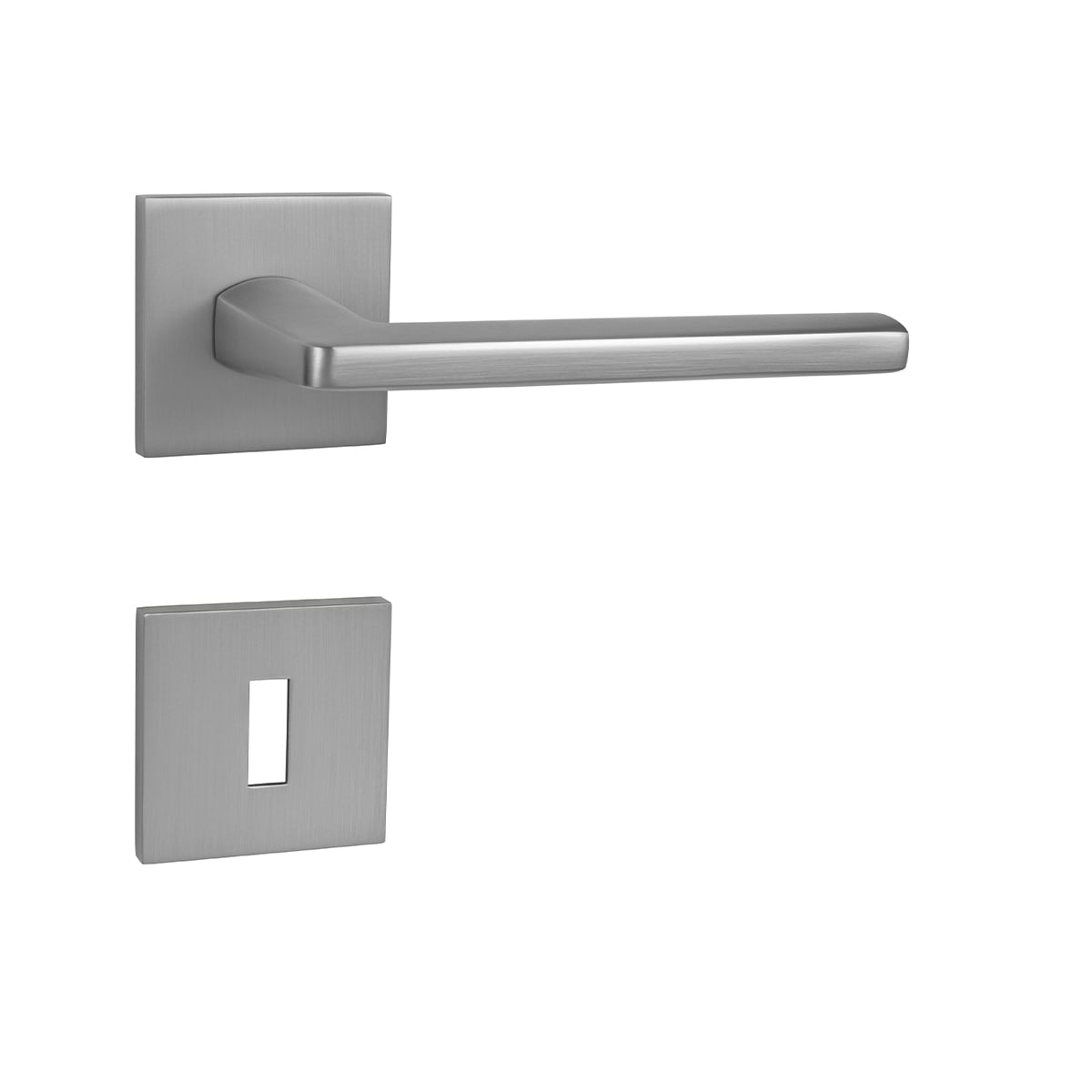 Rozetová kľučka na interiérové dvere s hranatou rozetou je vyrobená z materiálov vysokej kvality – zamak a je povrchovo upravená.