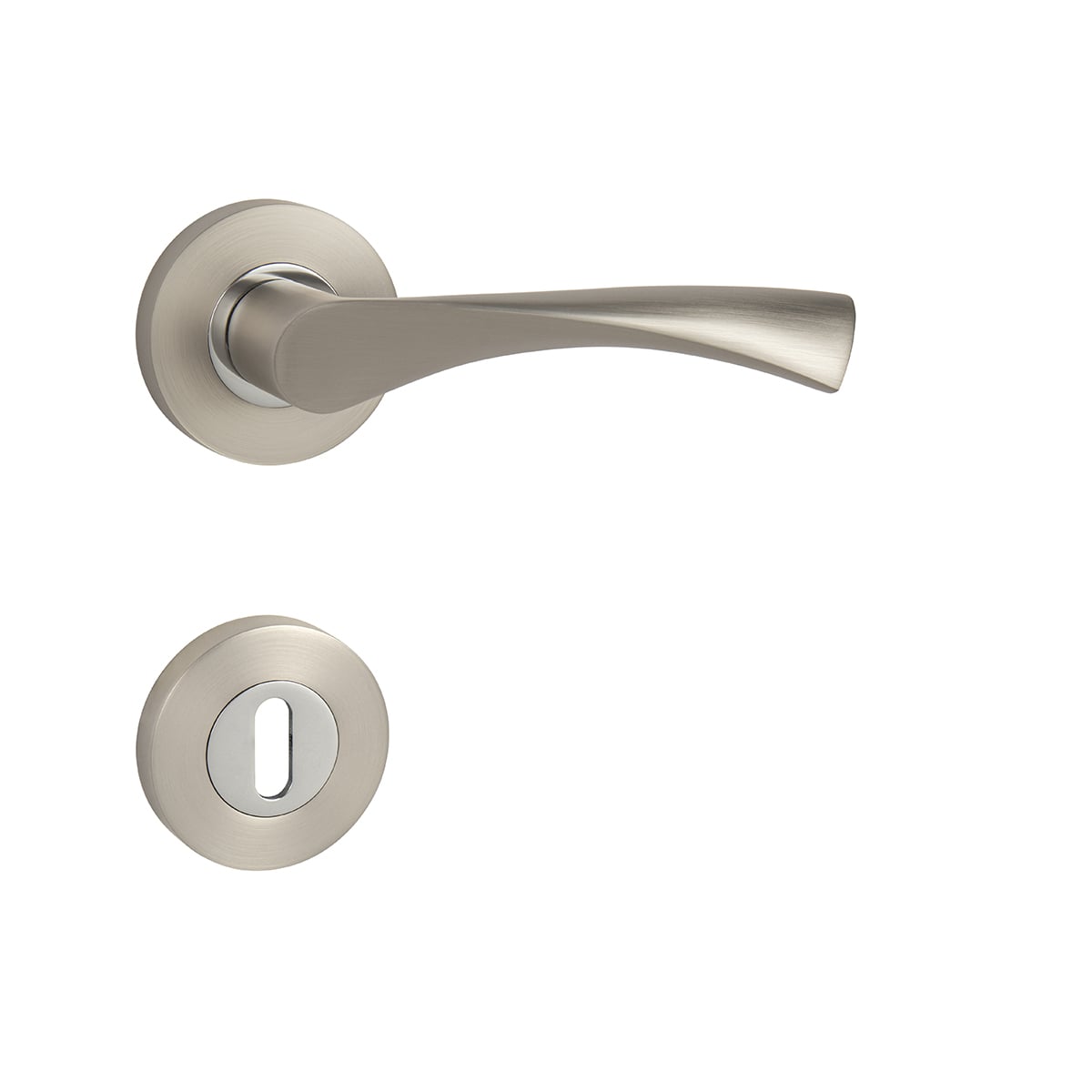 Rozetová kľučka na interiérové dvere s okrúhlou rozetou je vyrobená odlievaním z kvalitných zliatín zinku a hliníka a je povrchovo upravená. Rozeta má priemer 55 mm a hrúbku 10 mm. Kľučka je povrchovo upravovaná galvanizáciou a vyznačuje sa vysokou odolnosťou proti korózii.