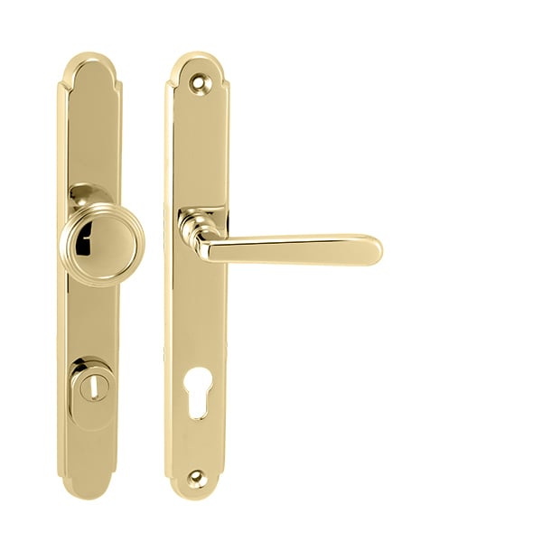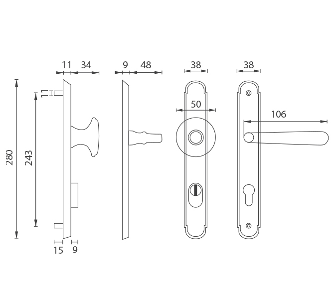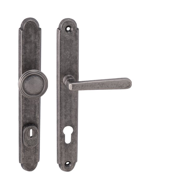 Štítová kľučka na vchodové a bezpečnostné dvere so spevneným rustikálnym štítom s prekrytím cylindrickej vložky je vyrobená z materiálov vysokej kvality – mosadz a je povrchovo upravená. Rustikálny štít má rozmery 38 mm x 280 mm a hrúbku 11 mm.