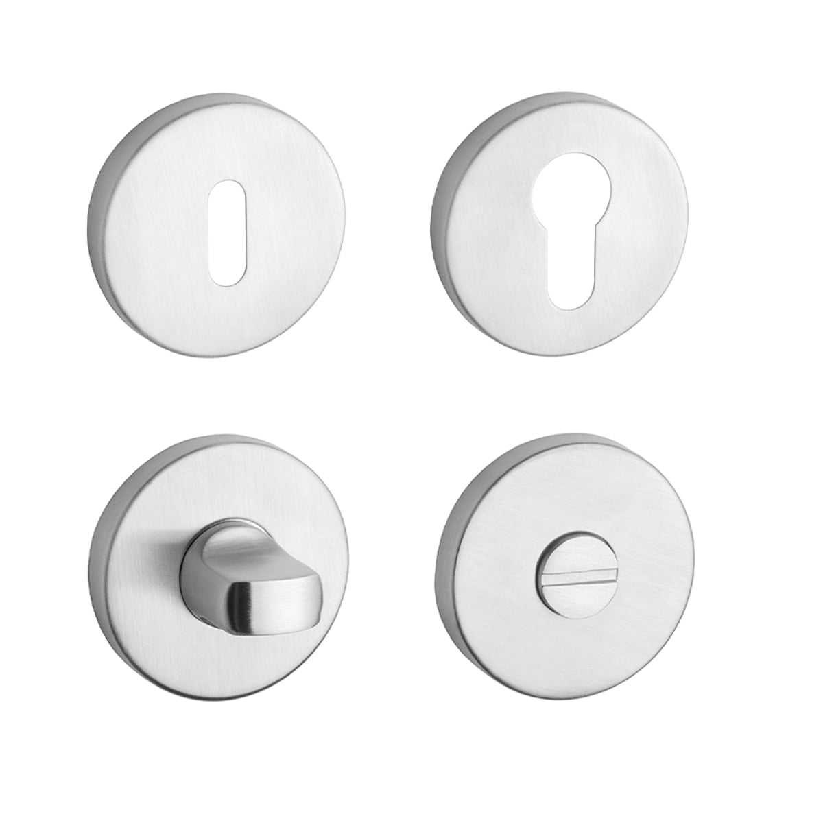 Rozeta má otvor určený pre: interiérový kľúč (BB), cylindrickú vložku (PZ), alebo WC set s integrovaným otočným kľúčom.