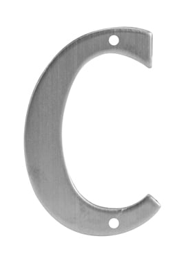 Domové písmeno „C“ je vyrobené z vysokokvalitnej nehrdzavejúcej ocele, známej ako nerez a je povrchovo upravené, výška písmena 120 mm, montáž skrutkovaním samorezka, hrúbka 1 mm, séria Beslagsboden.
