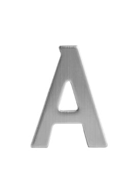 Domové písmeno „A“ je vyrobené z vysokokvalitnej nehrdzavejúcej ocele, známej ako nerez a je povrchovo upravené, výška písmena 43 mm, hrúbka 1 mm,séria Beslagsboden.