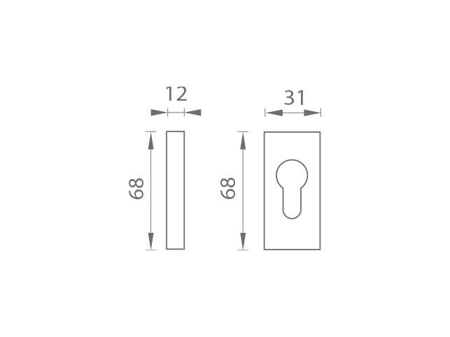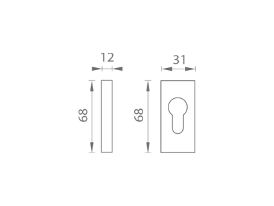 Úzka hranatá rozeta je vyrobená z hliníka a je povrchovo upravená. Rozeta má rozmery 31 mm x 68 mm, hrúbku 12 mm a otvor pre cylindrickú vložku (PZ). Balenie obsahuje 2 kusy roziet (pár)